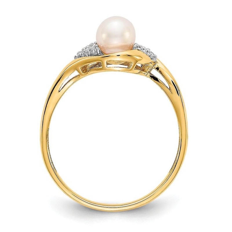 Anello in oro giallo 14k con diamanti lucidati e perle coltivate d'acqua dolce, misura 7,00